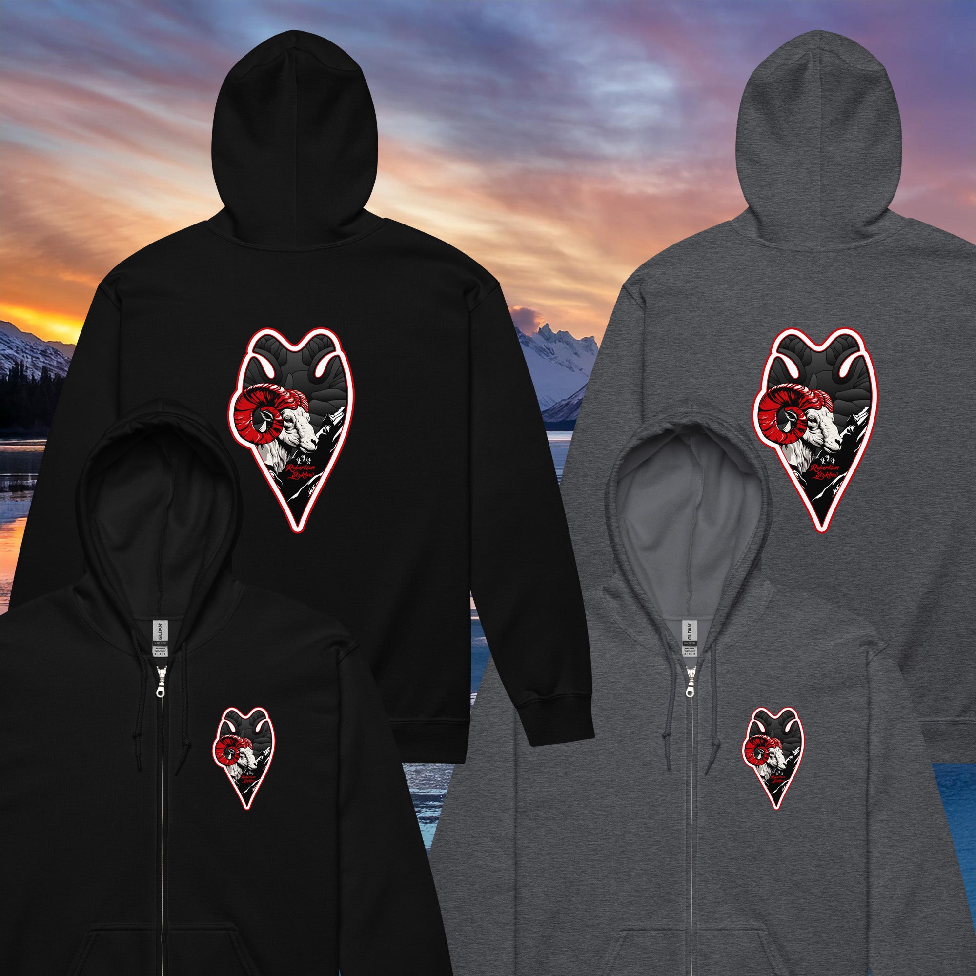 Dall Sheep Ram - Unisex Heavy Bend Zip Hoodie
